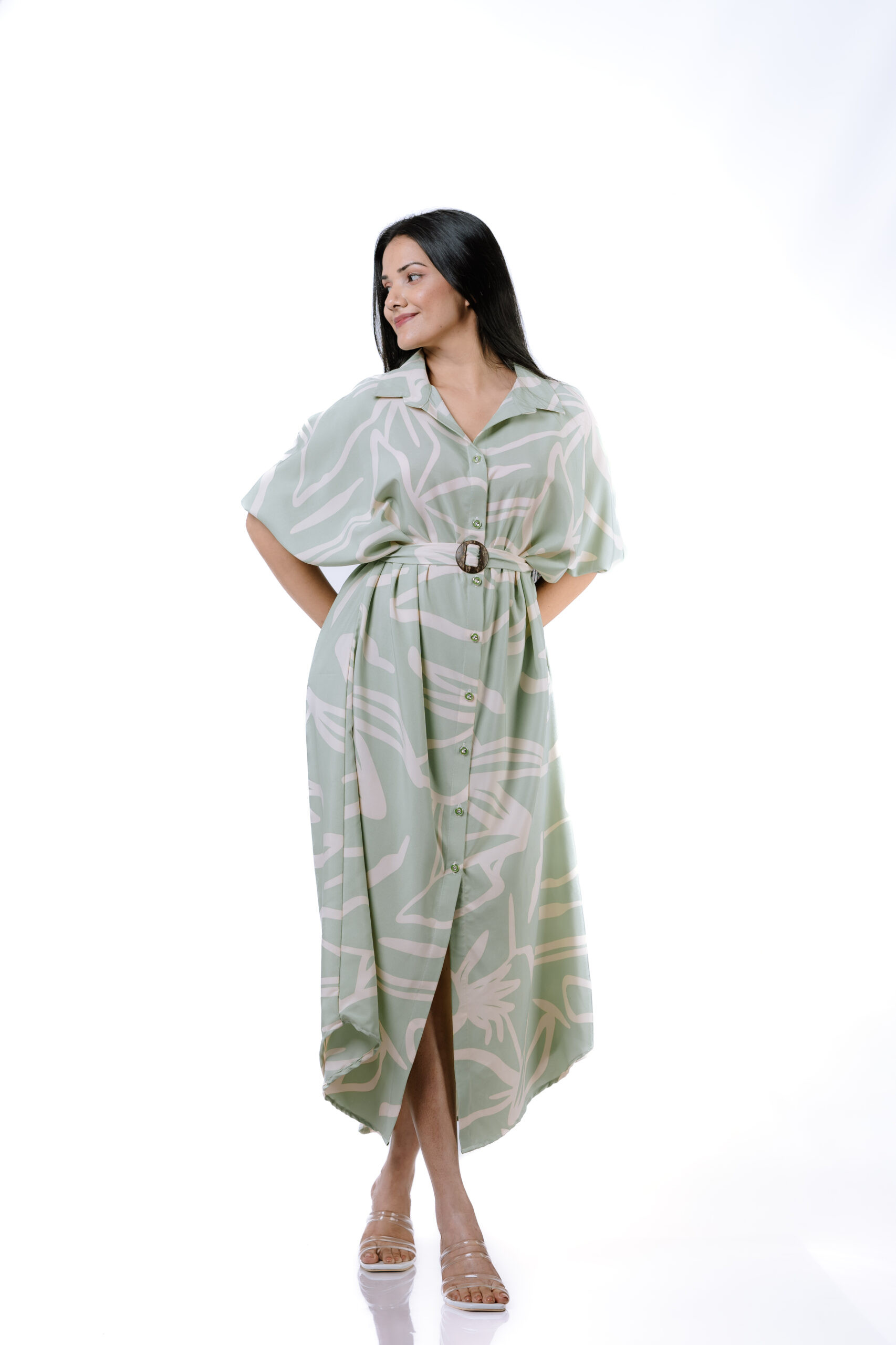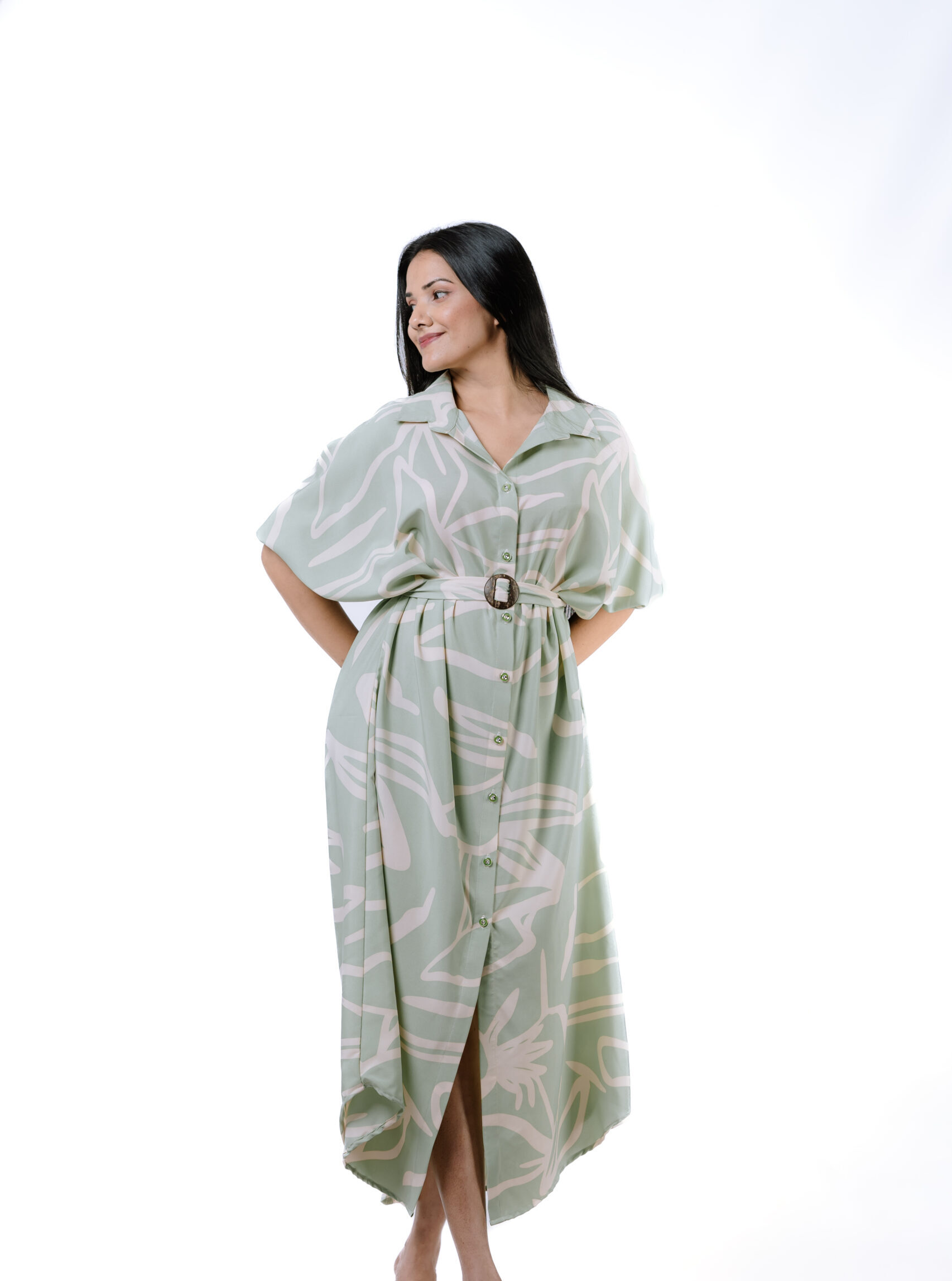 Sage Serenity Belted Maxi Dress