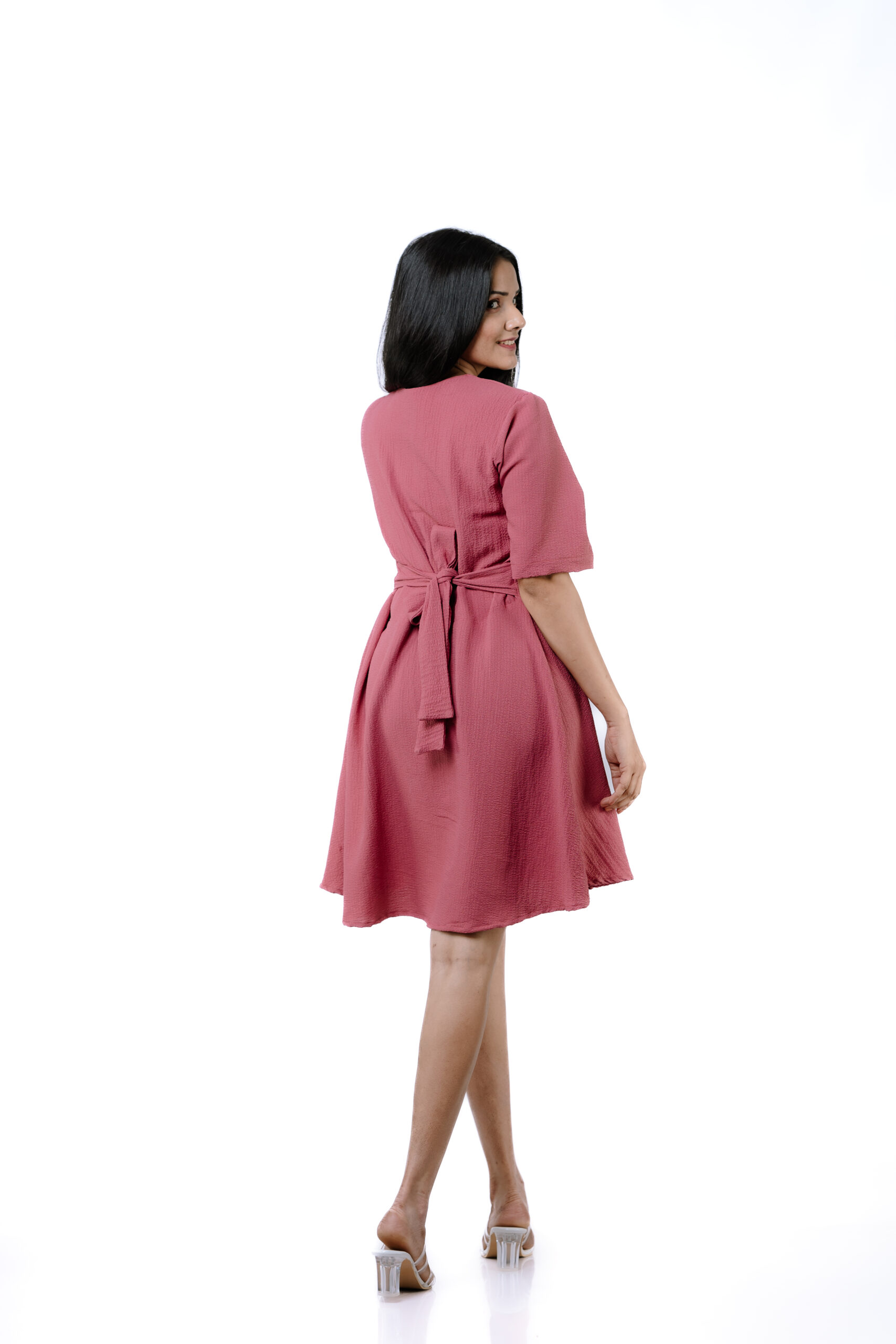 Pair this dress with clear strappy sandals for a chic and effortless look. The Dusty Rose Crossover Mini Dress is a must-have addition to your wardrobe, offering both sophistication and versatility.